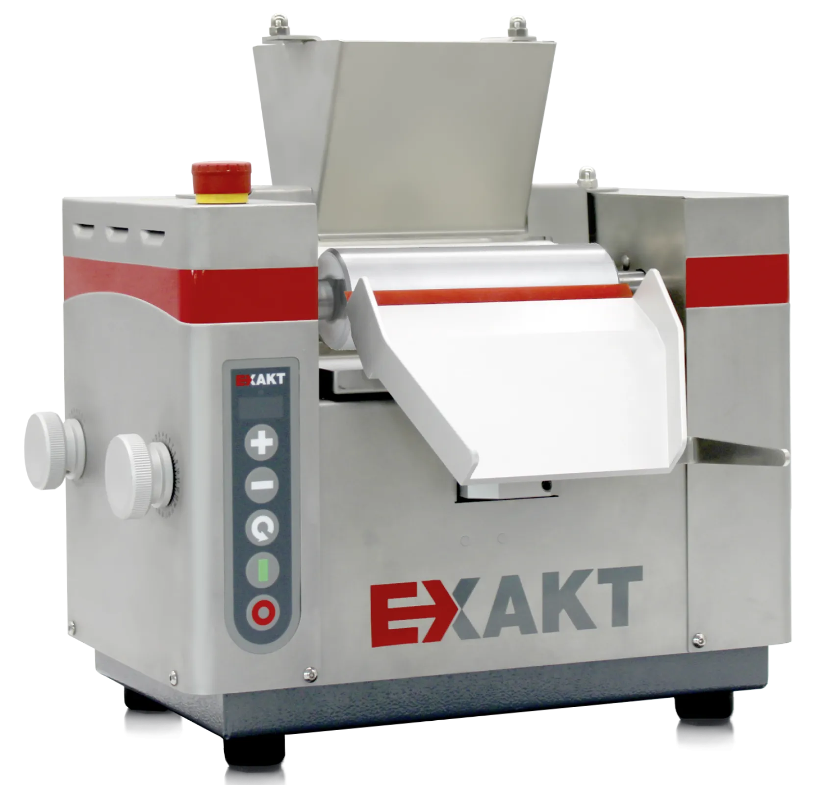 EXAKT 50 PLUS – the new standard for laboratory applications. Our newest model offers significantly higher performance combined with a user-friendly design and operation. Higher torque allows for precise dispersion – especially for high-viscosity materials. One-handed adjustment of gap widths guarantees excellent and reproducible product fineness. Effortlessly set the roller speed using the user-friendly membrane touchpad. High-quality roller surfaces (chrome or aluminium oxide) and the appealing stainless-steel exterior housing allow quick sanitary cleaning.